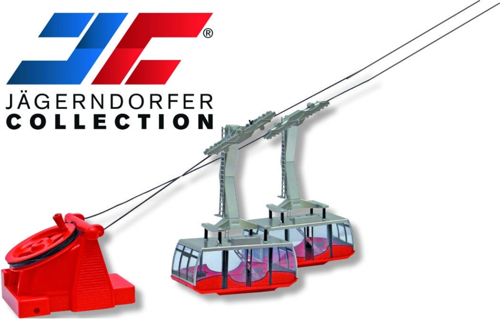 Pendelbahn rot mit 2 Kabinen für den Handbetrieb. Im Maßstab 1:32.